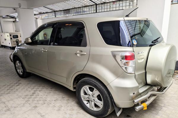 TOYOTA RUSH Model & Package: 2012, GL Fuel Type: Octane Mileage: 68,000km (100% genuine odometer) Registration: July 2017 Color: Gold Metallic (T23) Displacement: 1500 cc (1.5L) Transmission: Automatic Condition: Softly used, no accident history, fresh engine, general servicing (5W30 genuine engine oil and filters) changed in timely interval, new aux battery, 2 brand new tires, 2 good condition tires. Excellent brakes. All factory accessories. No unnecessary aftermarket upgradations. Minor scratches, original body paint. Owned by a senior advocate, used only for family mostly in Chattogram city. Excellent mileage in city and highway. Options: Factory installed Plasma Cluster ION Air Purifier, Fully Loaded, Super cool AC, Telescopic power steering, Under glow interior lights, Tinted back glasses, All power windows, Soft touch AC panel, Seat covers used from beginning, Fresh original seats, Leather steering, Driver arm rest, Chrome inside door handles, Spare wheel, Parking sensors, Back camera. Halogen Projection dual barrel headlights, Halogen fog lights, High quality steel bumpers, Denso trumpet dual horns, Mud guards, 4D Rubber floor mats, Fresh floor carpets, additional storage boxes, Photosun rearview mirror etc. Multimedia system: Genuine full touch screen navigation TV, Bluetooth, USB, AUX, DVD, CD, FM, MIC, 4 door factory sound system. Excellent sound quality. Wheels: Toyota Genuine 16” Alloy Rims, Tire size: 215/65R16. Ground clearance: 9-inch appx. (No bati/spacer installed) Papers: Tax Token (July 2024), Fitness (July 2024) updated. Chattogram BRTA Current Location: Bashundara R/A, Dhaka. Asking Price: 19,20,000 BDT (Negotiable) CALL: +8801711122295 (Owner) Only serious buyers are requested to call in day time.